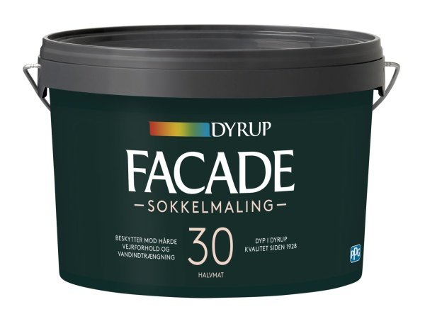 Dyrup Facade sokkelmaling 2,25 ltr sort er en ekstra dækkende akrylmaling, der yder god beskyttelse mod hårde og omskiftelige vejrforhold samt indtrængning af vand. Dyrup Facade sokkelmaling har dog stadig de diffusionsåbne egenskaber, der tillader dit murværk at ånde. Dyrup Facade sokkelmaling omrøres før brug.